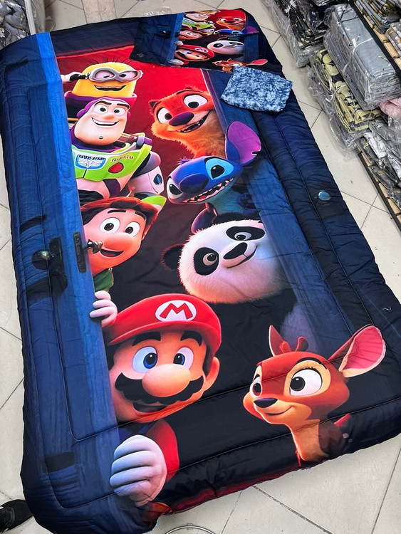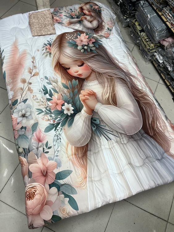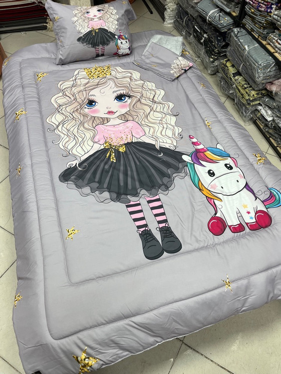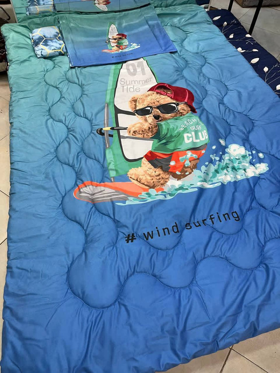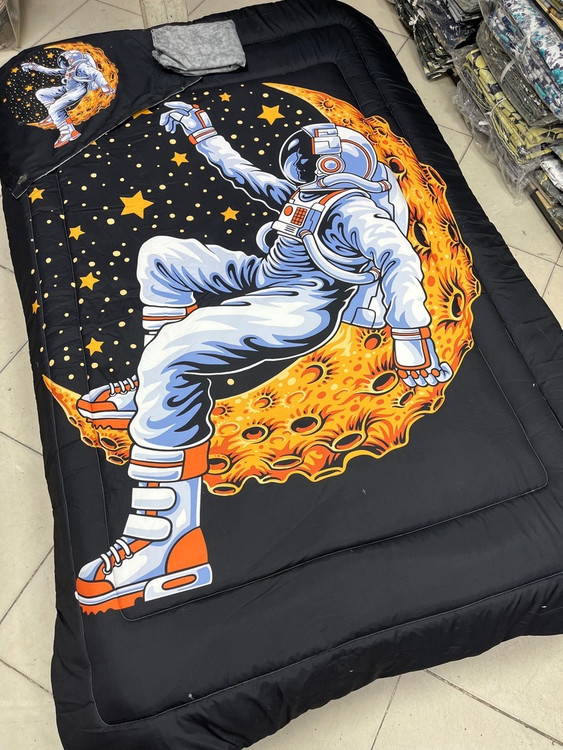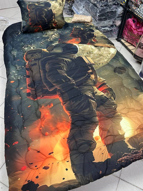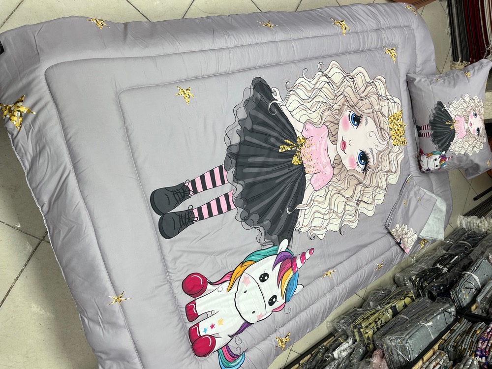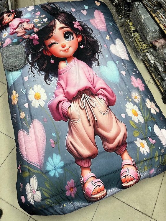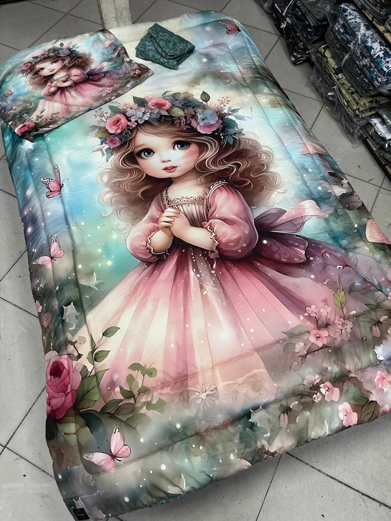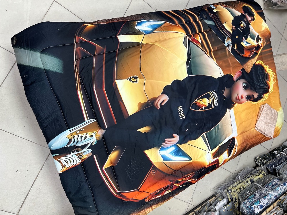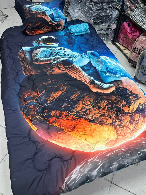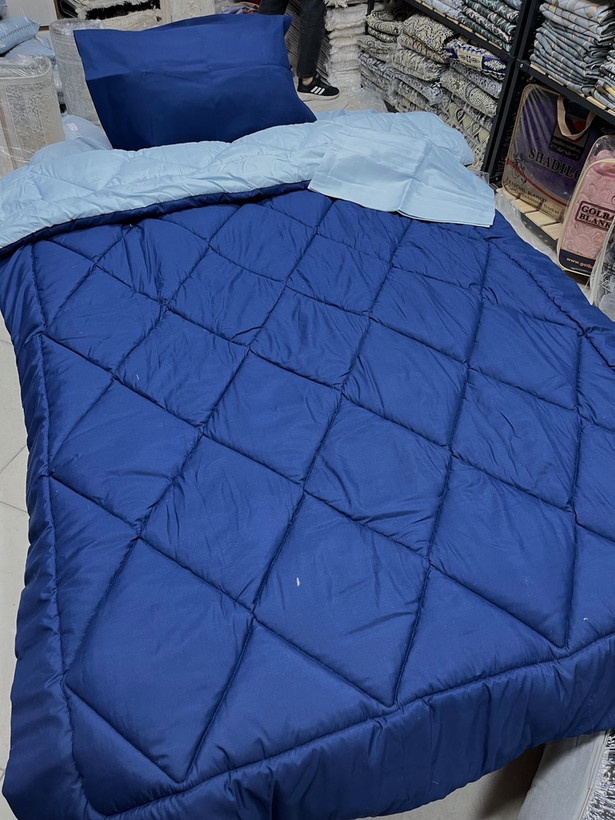 یک نفره چهار تکه : یک عدد لحاف توپر با دوخت کامپیوتری ( 150 در 220) یک عدد ملحفه تشک کشدوز 90 در 200 یک عدد کاور بالشت 50 در 70