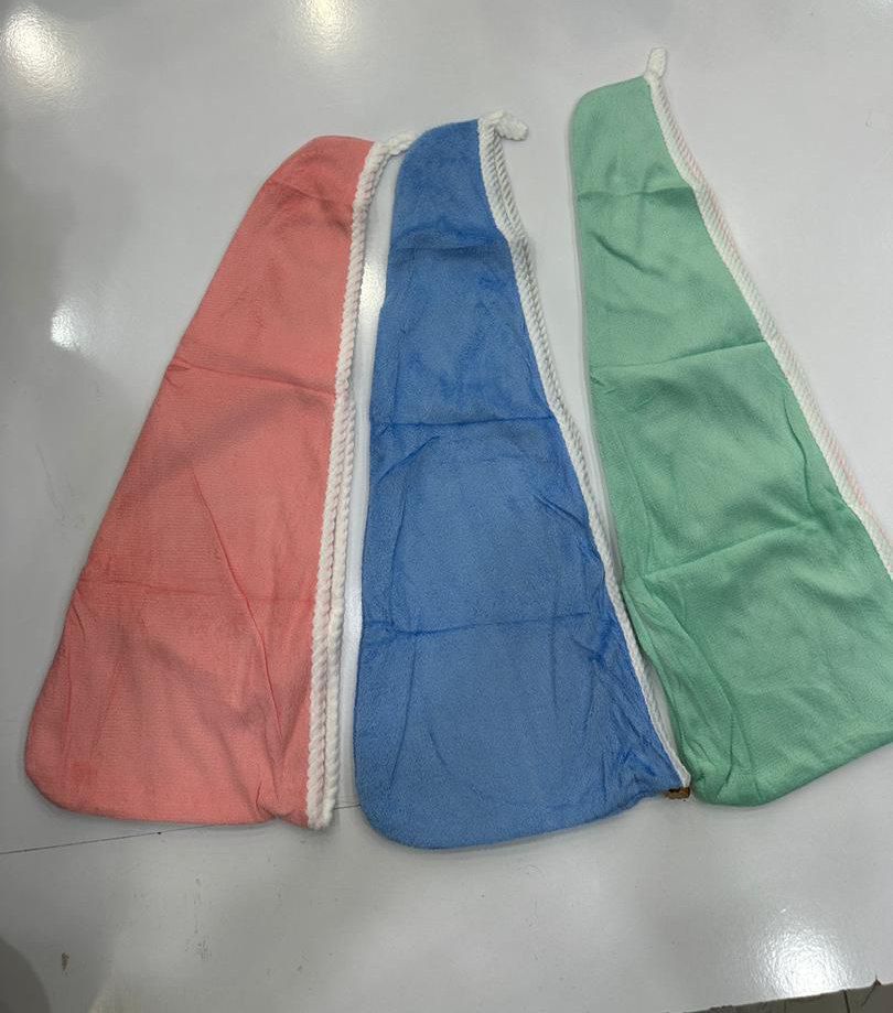 .کلاه حمام هندی .وارداتی . مناسب موهای بلند .ابگیری عالی . باعث زودتر خشک شدن موها میشه . جلوگیری از سرما خوردن بعداز حمام . اقتصادی